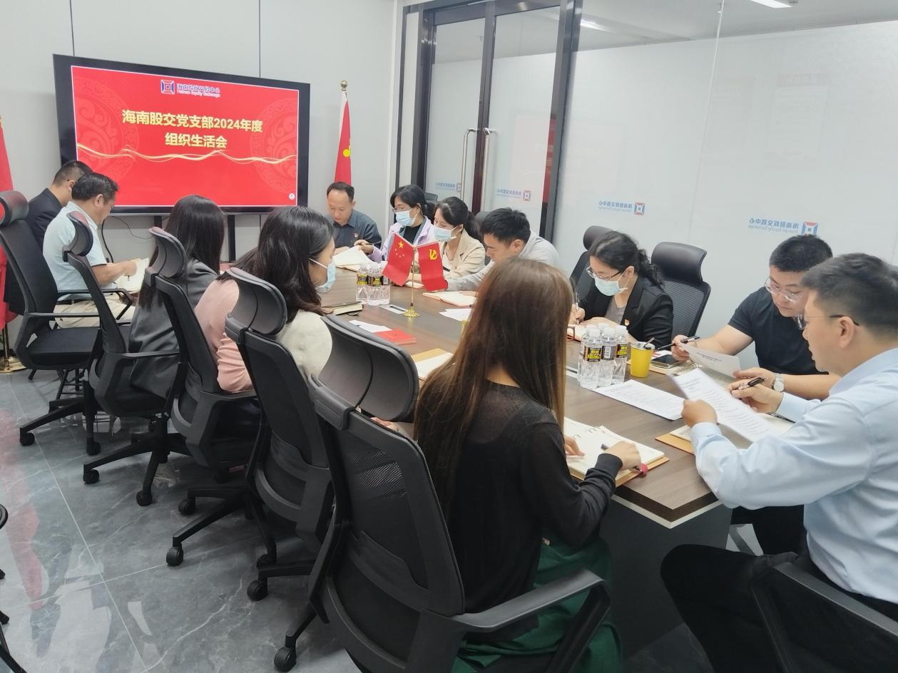 為高質(zhì)量開好2024年度組織生活會,打牢思想基礎(chǔ),3月18日,海南股交黨支部組織開展2024年度組織生活會會前集中學(xué)習(xí),會議由海南股交黨支部書記、董事長朱磊主持,海南股交黨員、預(yù)備黨員、發(fā)展對象、積極分子共18人...