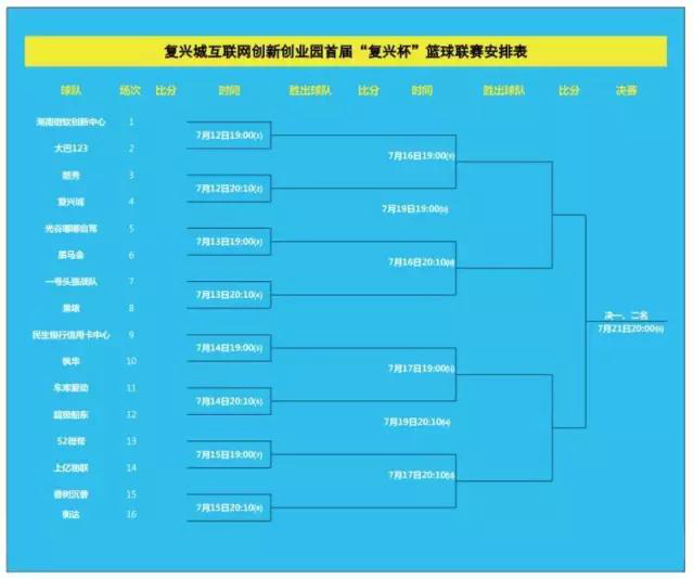 7月12日晚,2016年??谑袕?fù)興城互聯(lián)網(wǎng)創(chuàng)新創(chuàng)業(yè)園首屆“復(fù)興杯”籃球聯(lián)賽在海口世紀(jì)公園籃球場揭幕。來自復(fù)興城創(chuàng)新創(chuàng)業(yè)園區(qū)16支隊(duì)伍展開為期10天的角逐。揭幕戰(zhàn)由海南微軟創(chuàng)新中心對陣大巴123,經(jīng)過爭奪,大巴123以66:53擊敗海南微軟創(chuàng)新中心;酷秀55:44勝復(fù)興城取得開門紅晉級下一輪。