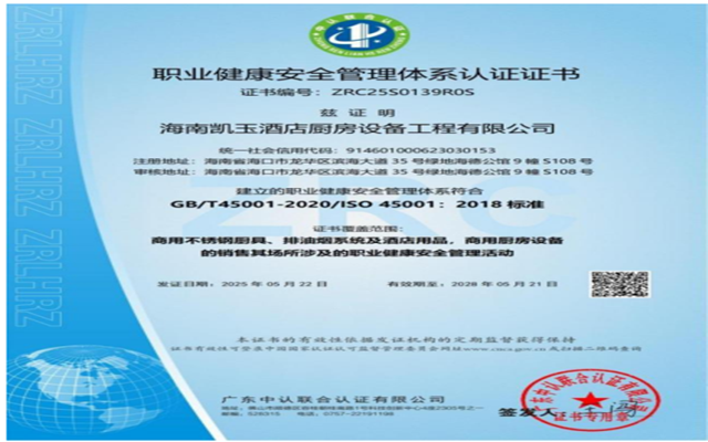 海南凱玉酒店廚房設(shè)備工程有限公司(以下簡(jiǎn)稱(chēng)凱玉廚具或我司)成立于2013年,注冊(cè)資金2800萬(wàn),地處海南省??谑?。歷經(jīng)多年發(fā)展,已在海南股權(quán)交易中心上市,是海南省行業(yè)中率先獲得十星級(jí)售后服務(wù)證書(shū),通過(guò)ISO9001:2015質(zhì)量管理體系認(rèn)證、ISO14001:2015環(huán)境管理體系認(rèn)證、GB/T45001-2020職業(yè)健康安全管理體系認(rèn)證、AAA企業(yè)信用等級(jí)認(rèn)證、中國(guó)安全生產(chǎn)標(biāo)準(zhǔn)化一級(jí)企業(yè)認(rèn)證、中國(guó)廚房設(shè)備工程行業(yè)一級(jí)認(rèn)證、燃?xì)馊紵骶甙惭b維修能力一級(jí)認(rèn)證、采用國(guó)際標(biāo)準(zhǔn)認(rèn)證并由政府部門(mén)審查頒發(fā)證書(shū)的企業(yè)(詳見(jiàn)專(zhuān)業(yè)資質(zhì)文件),一般納稅人A級(jí)信用企業(yè)、海南省酒店與餐飲行業(yè)協(xié)會(huì)副會(huì)長(zhǎng)單位、中國(guó)廚具行業(yè)十大品牌、中國(guó)著名品牌、2021年度中國(guó)國(guó)際飯店業(yè)優(yōu)質(zhì)廚房設(shè)備供應(yīng)商推薦品牌、2022年度中國(guó)飯店業(yè)高質(zhì)量發(fā)展設(shè)備供應(yīng)商品牌、酒店用品與設(shè)備供應(yīng)商等級(jí)認(rèn)證甲級(jí)企業(yè)、國(guó)家高新技術(shù)企業(yè)、專(zhuān)精特新企業(yè)、海南省專(zhuān)精特新中小企業(yè)證書(shū)。 本公司擁有自主產(chǎn)權(quán)辦公大樓、產(chǎn)品體驗(yàn)中心以及自主生產(chǎn)基地(位于海南省??谑旋埲A區(qū)城西鎮(zhèn)蒼嶧二路4號(hào),園區(qū)面積達(dá)1245平方米,購(gòu)置行業(yè)內(nèi)一流生產(chǎn)加工設(shè)備),擁有多項(xiàng)產(chǎn)品專(zhuān)利技術(shù),創(chuàng)立了椰爐、椰灶兩大爐具自主品牌,主要為大型星級(jí)酒店、大型企事業(yè)單位、地產(chǎn)公司、餐飲企業(yè)等提供專(zhuān)業(yè)的廚房設(shè)備及排油煙系統(tǒng)供貨、安裝及設(shè)計(jì)服務(wù)。