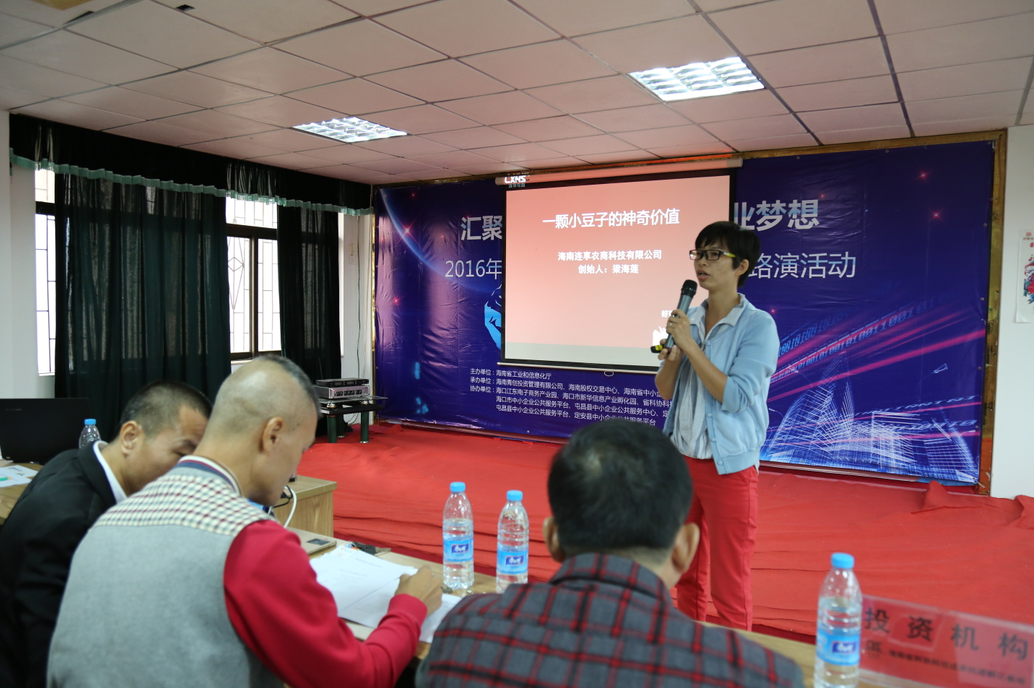 11月24日,“匯聚投資力量,助燃創(chuàng)業(yè)夢想——2016年海南省創(chuàng)業(yè)創(chuàng)新項(xiàng)目投資路演”在海南省科技活動(dòng)中心順利舉行,同時(shí)這也是海南股權(quán)交易中心第16期企業(yè)路演?;顒?dòng)由海南省工業(yè)和信息化廳主辦,海南股權(quán)交易中心、海南青創(chuàng)投資管理有限公司、海南省中小企業(yè)服務(wù)中心聯(lián)合承辦,??诮瓥|電子商務(wù)產(chǎn)業(yè)園等多家單位協(xié)辦。9家路演企業(yè)、團(tuán)隊(duì)及6家投資機(jī)構(gòu)參加此次路演活動(dòng)。