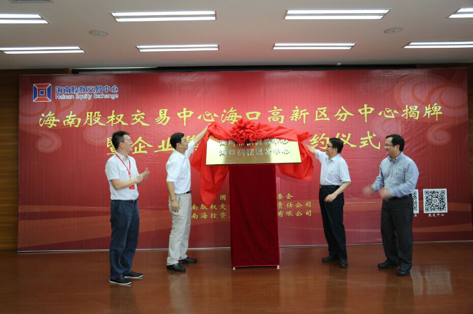 隨后,省科技廳黨組書記葉振興書記、省金融辦鄧傳明主任、海口國家高新區(qū)黨委書記顧剛書記和海南股交中心李曉剛董事長共同為海南股權(quán)交易中心高新區(qū)分中心揭牌。
