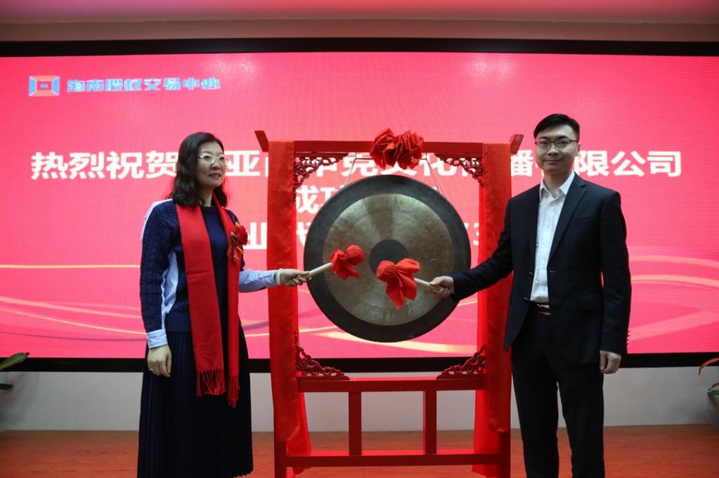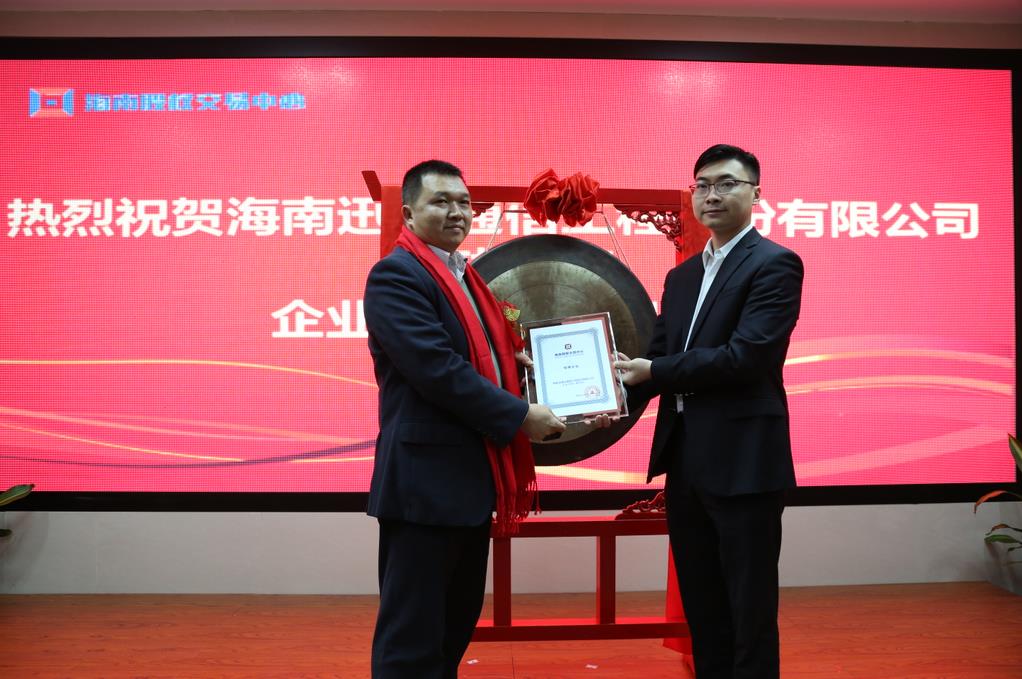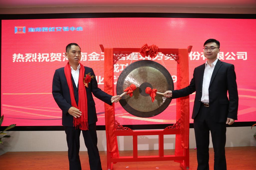 12月28日,海南股權(quán)交易中心成立兩周年之際,在股交中心“助力中小微企業(yè)發(fā)展工程”啟動(dòng)暨企業(yè)集體掛牌儀式上,一共有10家企業(yè)正式掛牌股交中心,海南金融控股股份有限公司副總經(jīng)理吳子魁,海南股權(quán)交易中心副總經(jīng)理吳惠玉、副總經(jīng)理程棟才、副總經(jīng)理許博分別與企業(yè)共同鳴鑼并向企業(yè)代表授牌。