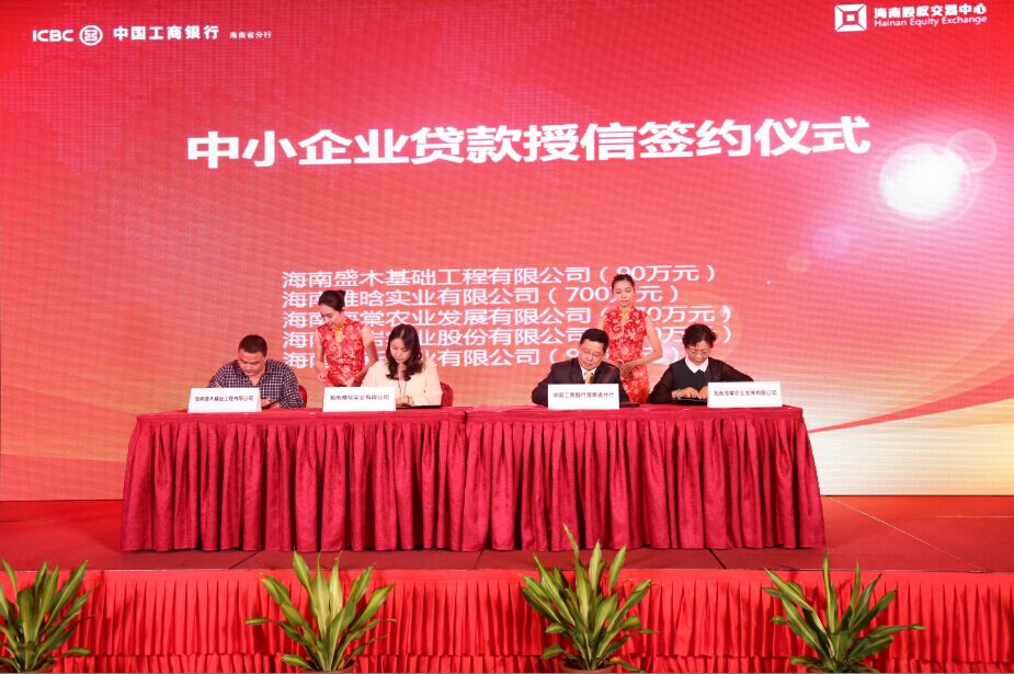 隨后,省工行吳傳武副行長(zhǎng)與5家企業(yè)正式簽訂了貸款協(xié)議和授信協(xié)議,在股交中心的撮合之下,省工行一共向5家企業(yè)提供合計(jì)2260萬(wàn)元的貸款和授信。其中,海南立新實(shí)業(yè)有限公司獲得900萬(wàn)元授信,海南雅晗實(shí)業(yè)有限公司獲得700萬(wàn)元貸款,海南仙巖實(shí)業(yè)股份有限公司獲得300萬(wàn)元授信,海南海棠農(nóng)業(yè)發(fā)展有限公司獲得270萬(wàn)元貸款,海南盛木基礎(chǔ)工程有限公司獲得90萬(wàn)元貸款。