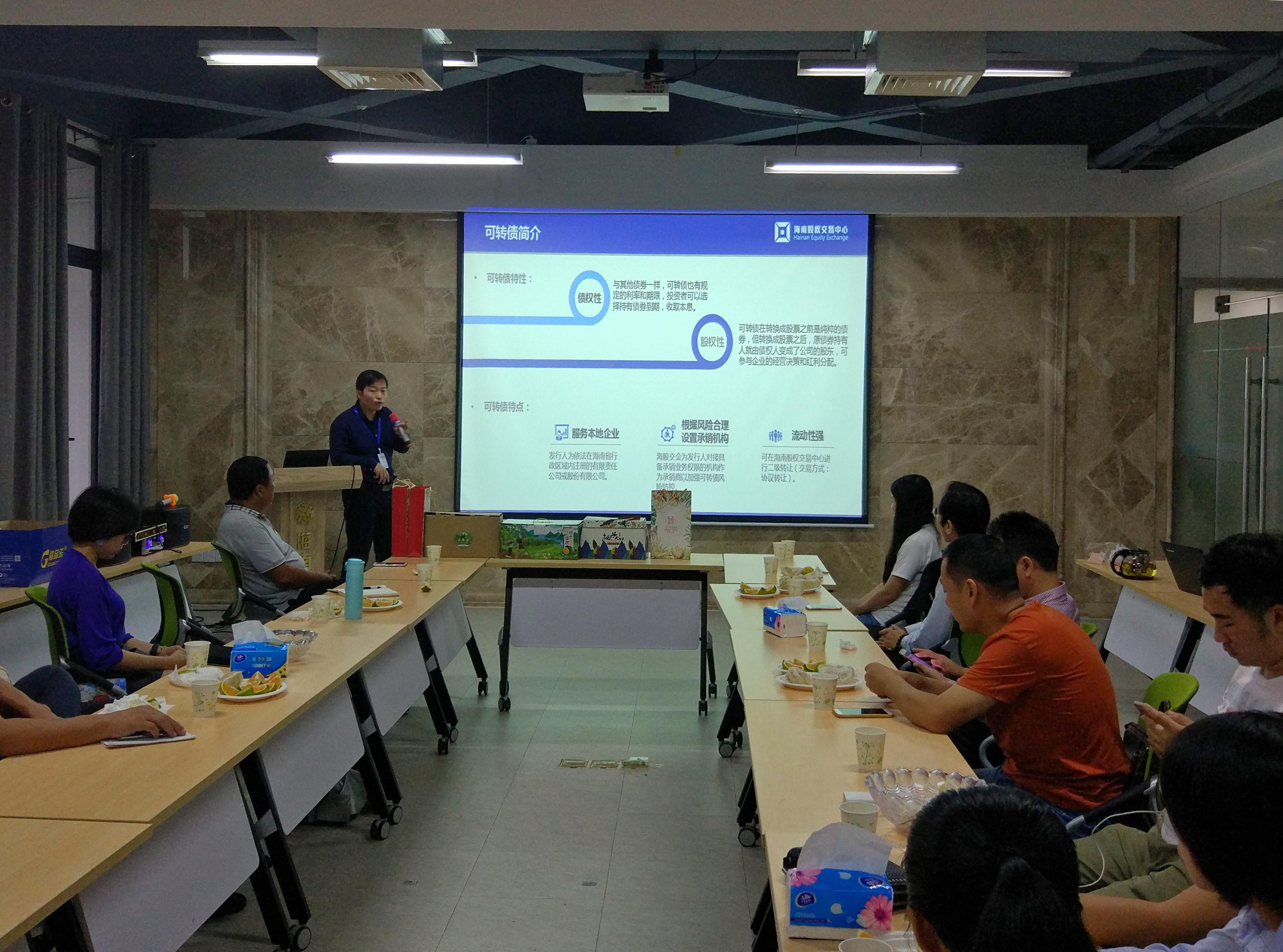 活動現(xiàn)場,股交中心相關業(yè)務人員向在場的企業(yè)講解了股交中心眾籌、可轉債等創(chuàng)新融資業(yè)務,邀請在場企業(yè)共同品鑒瓊中綠橙及洪安無籽蜜柚等優(yōu)質(zhì)農(nóng)產(chǎn)品,并展開一系列的探討?;顒託夥諢崃胰谇?,企業(yè)代表充分溝通互動,并積極對企業(yè)發(fā)展情況及產(chǎn)品進行交流,探討企業(yè)建設發(fā)展,共同尋找合作契機。