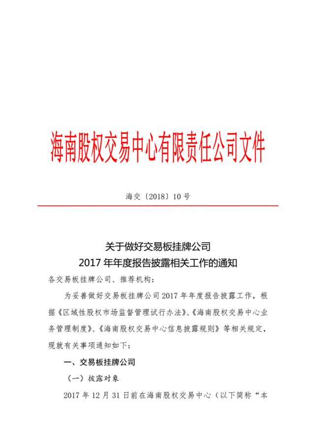 關(guān)于做好交易板掛牌公司2017年年度報告披露相關(guān)工作的通知