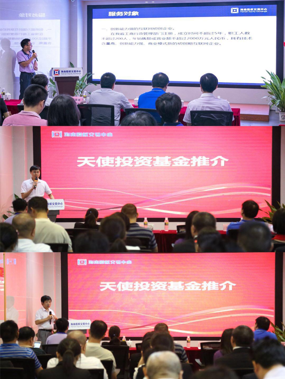 現(xiàn)場,??刭Y本及聯(lián)合資產(chǎn)對天使投資、天使投資基金等方面內(nèi)容進(jìn)行了介紹,并表示,未來在進(jìn)行天使投資過程中,將會優(yōu)先考慮海南股交中心“天使板”的掛牌企業(yè),同時,希望企業(yè)能夠通過“天使板”的服務(wù),規(guī)范發(fā)展。