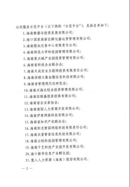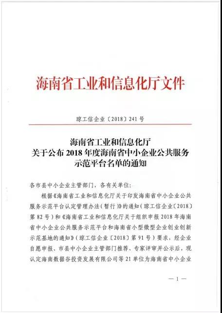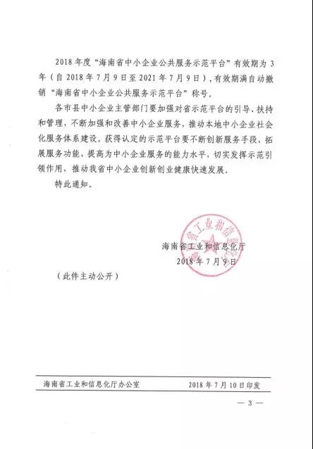 近日,省工信廳正式印發(fā)通知,公布2018年度海南省中小企業(yè)公共服務(wù)示范平臺(tái)名單,包括海南股權(quán)交易中心在內(nèi)的21家單位獲得認(rèn)可。