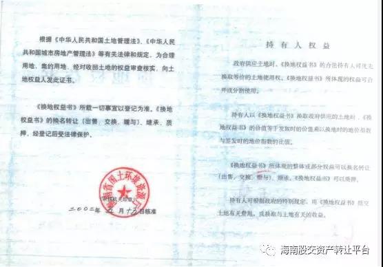 (《換地權(quán)益書》-備注頁)