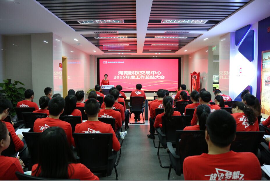 1月7日下午,新年伊始,海南股權(quán)交易中心在海南老城經(jīng)濟(jì)開發(fā)區(qū)海南生態(tài)軟件園B13號樓召開了2015年度工作總結(jié)會議。會議對2015年度工作進(jìn)行總結(jié),并對2016年工作做了規(guī)劃,股交中心董事長李曉剛,總裁班淼琦,副總裁吳惠玉、陸瑋、程棟才,以及股交中心海南、北京、上海、深圳四地的全體員工參加了本次會議。
