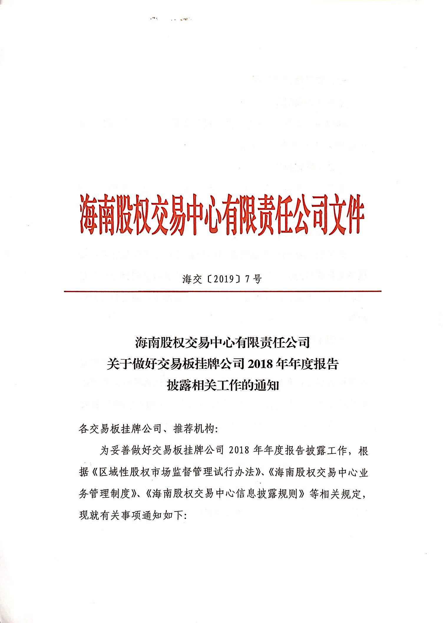 關(guān)于做好交易板掛牌公司2018年年度報(bào)告披露相關(guān)工作的通知