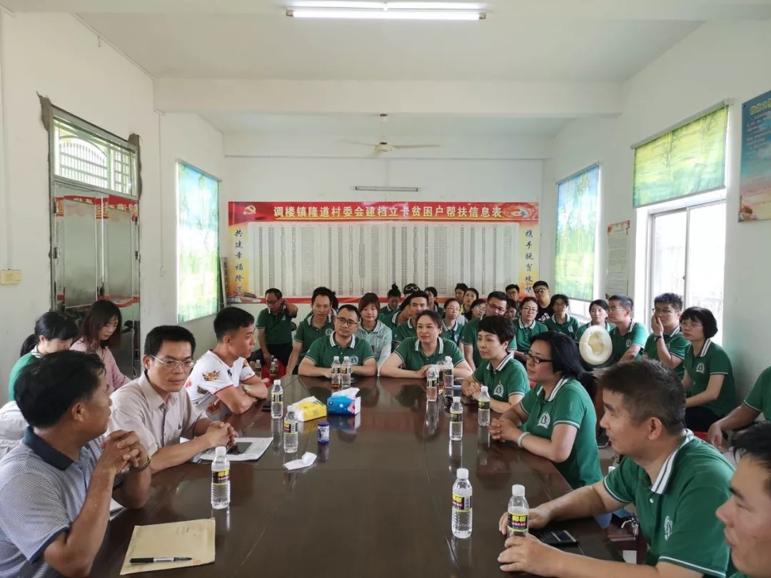 中午稍事休息后,全體員工前往隆道村村委會,與隆道村委會黨支部書記曾建師、駐村書記鐘文歐及村民開展座談交流,會上,班淼琦總經理向曾書記及村民們介紹了海南股交的基本情況以及近年來開展扶貧工作的情況,希望通過海南股交的平臺功能、掛牌企業(yè)資源等優(yōu)勢,幫助隆道村進一步推進產業(yè)扶貧工作,并圍繞發(fā)掘隆道村特色產品進行統一包裝、打造專屬隆道村的特色農業(yè)品牌等主題與曾書記和村民進行了探討。