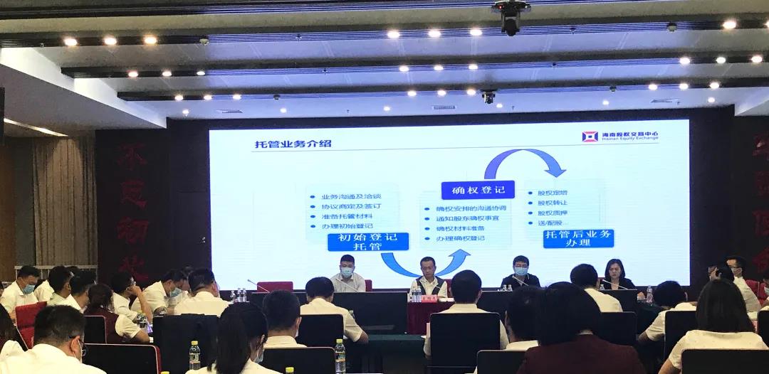 海南股交工作人員向與會(huì)人員介紹股權(quán)托管政策及我省農(nóng)商行股權(quán)托管業(yè)務(wù)開展情況,重點(diǎn)講解了初始登記及確權(quán)登記的流程和細(xì)則。在互動(dòng)環(huán)節(jié),各市縣行社股權(quán)登記托管工作負(fù)責(zé)人就托管工作中遇到的問題及存在的難點(diǎn)、監(jiān)管政策和后續(xù)辦理流程等問題進(jìn)行了充分交流。