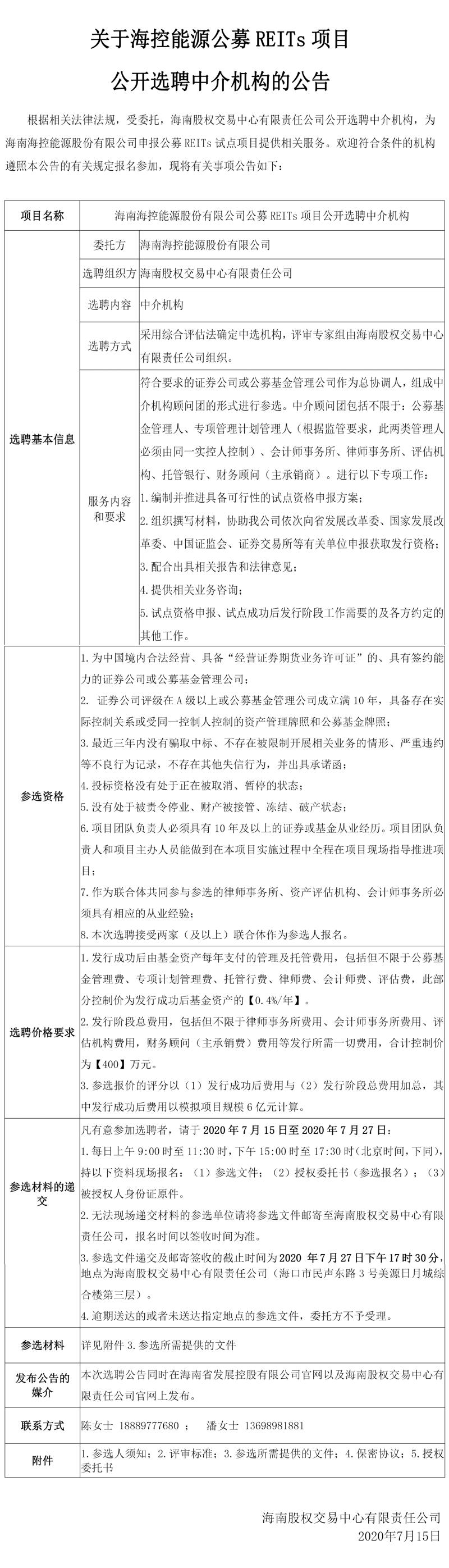 關(guān)于??啬茉垂糝EITs項(xiàng)目公開選聘中介機(jī)構(gòu)的公告