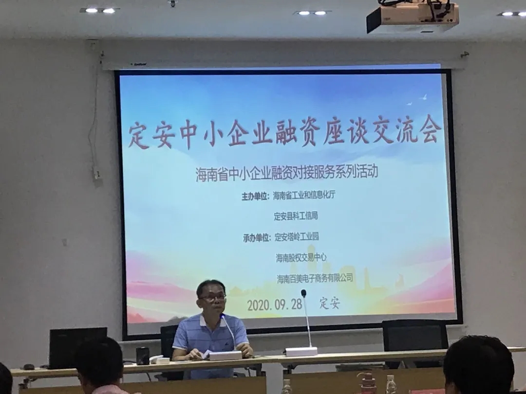 9月28日下午,由海南省工業(yè)和信息化廳、定安縣科工信局主辦,海南股交、定安塔嶺工業(yè)園、海南百美電子商務有限公司聯(lián)合承辦的“定安縣中小企業(yè)融資座談交流會”在定安舉辦。