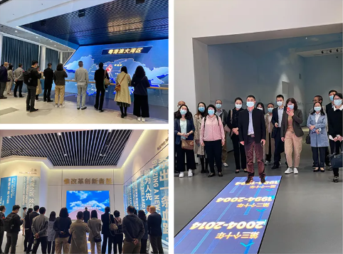 游學(xué)團(tuán)企業(yè)家參觀廣州科學(xué)城展廳,通過觀看宣傳短片,聽取規(guī)劃沙盤,科技手段模型了解園區(qū)的規(guī)劃發(fā)展以及企業(yè)進(jìn)駐和人才引進(jìn)情況。