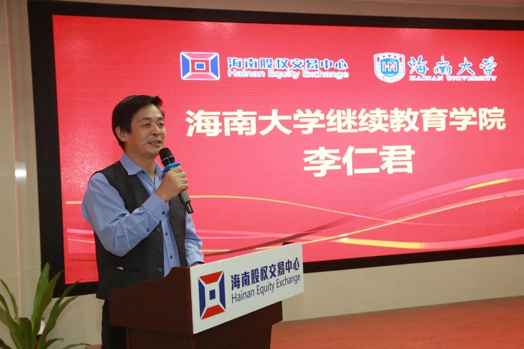李仁君重點介紹了海南大學(xué)繼續(xù)教育學(xué)院的發(fā)展定位、教學(xué)理念、辦學(xué)特色等基本情況,對近年來海南區(qū)域性股權(quán)市場的建設(shè)成效和海南股交的創(chuàng)新發(fā)展給予高度評價。他指出,海南大學(xué)繼續(xù)教育學(xué)院與海南股交深化校企合作具有重要的意義,他表示,教學(xué)實踐基地的設(shè)立是海大資本班學(xué)員通過理論到實踐相連接的一座橋梁,同時也是熟悉企業(yè)資本運(yùn)作的一個平臺。海南大學(xué)繼續(xù)教育學(xué)院將與海南股交建立戰(zhàn)略合作的長效機(jī)制,加強(qiáng)互動交流,注重合作實效,共同發(fā)展。