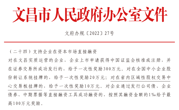 文昌市政策:文府辦規(guī)[2022] 27號(hào)