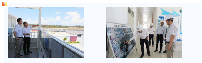 在鶯歌唱晚驛站項(xiàng)目,周軍平現(xiàn)場查看項(xiàng)目規(guī)劃設(shè)計(jì)和施工進(jìn)度,重點(diǎn)了解項(xiàng)目招商引資、要素保障、建設(shè)進(jìn)度等情況,強(qiáng)調(diào)要倒排工期、全力搶抓進(jìn)度,高質(zhì)高效推進(jìn)重點(diǎn)項(xiàng)目建設(shè),切實(shí)將項(xiàng)目打造成“優(yōu)質(zhì)工程、平安工程、綠色工程、廉潔工程”。在鶯歌海鹽場光伏項(xiàng)目基地,周軍平詳細(xì)了解鶯歌海鹽場光伏項(xiàng)目總體規(guī)劃,仔細(xì)詢問并網(wǎng)項(xiàng)目的投資額、發(fā)電量、營收利潤等情況,并深入中控室、技保室、配電室等處了解發(fā)電生產(chǎn)經(jīng)營和安全管控情況。