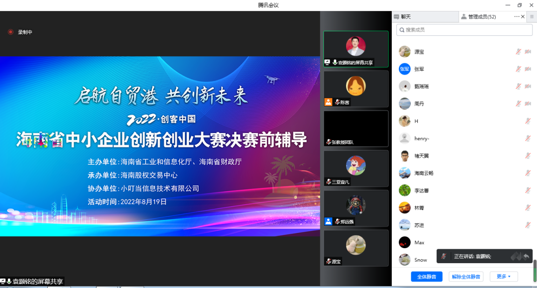 做為第七屆“創(chuàng)客中國”中小企業(yè)創(chuàng)新創(chuàng)業(yè)大賽海南賽區(qū)的承辦單位,在海南省工信廳的指導下,以及省內企政府相關部門、園區(qū)及服務機構的大力支持下,海南股權交易中心積極響應、精心組織,全程參與大賽的對接服務工作,通過線上線下為參賽項目提供賽事組織、賽前培訓、沖刺輔導等一系列活動,保障了大賽的順利組織及后續(xù)服務。自海南賽區(qū)啟動以來,共有290個企業(yè)與創(chuàng)客組踴躍報名參加,涉及生物醫(yī)藥、數字經濟、區(qū)塊鏈、智能制造、新能源、5G技術及運用等眾多領域。