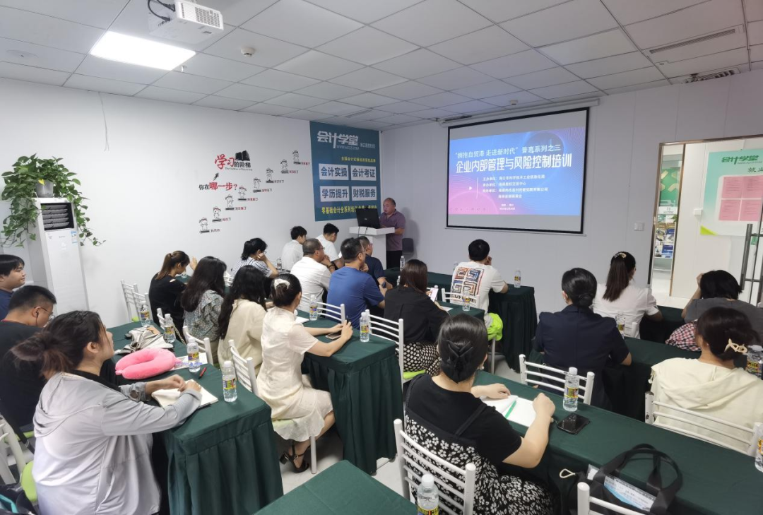 活動在海口周昌大廈舉行,由會計學堂金牌講師屠富 老師向我省中小企業(yè)介紹了現(xiàn)代企業(yè)管理制度,以及如何完善企業(yè)的內(nèi)部控制體系規(guī)范進行有效監(jiān)督約束,避免風險,確保企業(yè)經(jīng)營活動的正常運行。約20多家企業(yè)到場參與培訓。