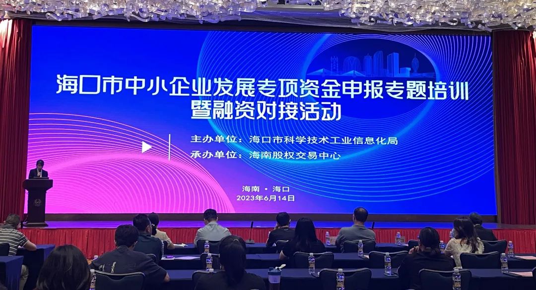 6月14日上午,由海口市科工信局主辦、海南股交承辦的海口市中小企業(yè)發(fā)展專項(xiàng)資金申報(bào)專題培訓(xùn)暨融資對(duì)接活動(dòng)在??谂e辦。