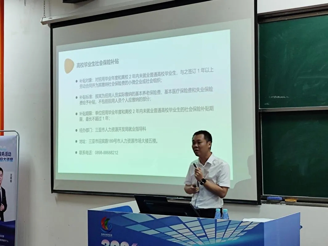 為激發(fā)青年學(xué)子的創(chuàng)新創(chuàng)業(yè)熱情,培養(yǎng)具備創(chuàng)新精神和創(chuàng)業(yè)能力的新時(shí)代人才,9月27日,由海南省人力資源和社會保障廳主辦、海南省人力資源開發(fā)局承辦、三亞學(xué)院、海南股權(quán)交易中心協(xié)辦的2024年海南創(chuàng)業(yè)服務(wù)活動 “高校就業(yè)創(chuàng)業(yè)大講堂”(第二期)在三亞學(xué)院成功舉辦。本次大講堂邀請創(chuàng)業(yè)導(dǎo)師面向高校大學(xué)生和在校創(chuàng)業(yè)青年群體進(jìn)行就業(yè)創(chuàng)業(yè)主題培訓(xùn)及就業(yè)創(chuàng)業(yè)政策宣講,解答就業(yè)創(chuàng)業(yè)困惑,提升就業(yè)創(chuàng)業(yè)技能?;顒游?0多名大學(xué)生參加。