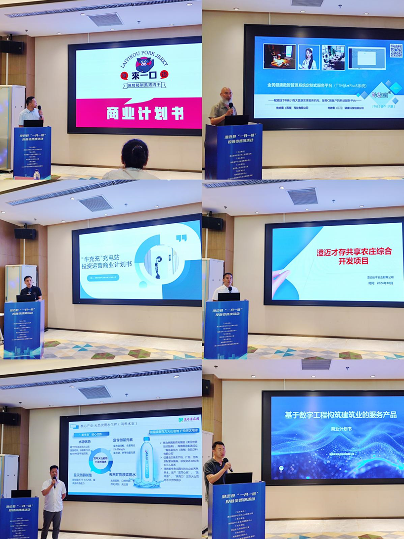 投融資路演環(huán)節(jié),海南澄邁來一口生態(tài)農(nóng)業(yè)發(fā)展有限公司、他她蜜(海南)科技有限公司、海南騰龍凱悅科技有限公司、澄邁遠(yuǎn)豐實(shí)業(yè)有限公司、海南泰新電氣成套設(shè)備工程有限公司、海南天鴻實(shí)業(yè)股份有限公司等六家優(yōu)質(zhì)企業(yè)分別進(jìn)行了精彩的現(xiàn)場路演,各項(xiàng)目代表依次圍繞企業(yè)背景、項(xiàng)目方向、研究成果、應(yīng)用前景及融資規(guī)劃等內(nèi)容對企業(yè)的創(chuàng)新成果和發(fā)展?jié)摿M(jìn)行了展示。