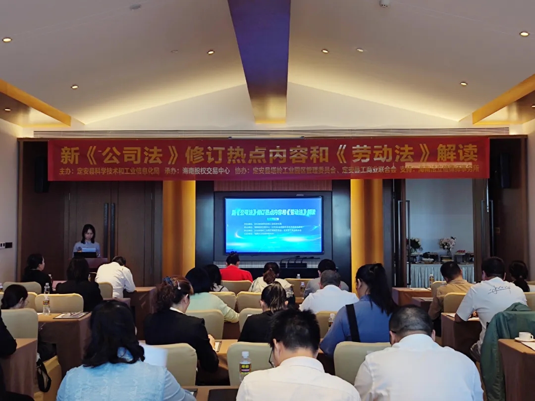 本次培訓旨在深入解讀新《公司法》修訂熱點內(nèi)容和《勞動法》的核心內(nèi)容,探討企業(yè)合規(guī)管理策略,助力企業(yè)健康發(fā)展?;顒佑啥ò部h科學技術和工業(yè)信息化局主辦,海南股權交易中心承辦,定安縣塔嶺工業(yè)園區(qū)管理委員會、定安縣工商業(yè)聯(lián)合會協(xié)辦,海南法立信律師事務所提供支持。